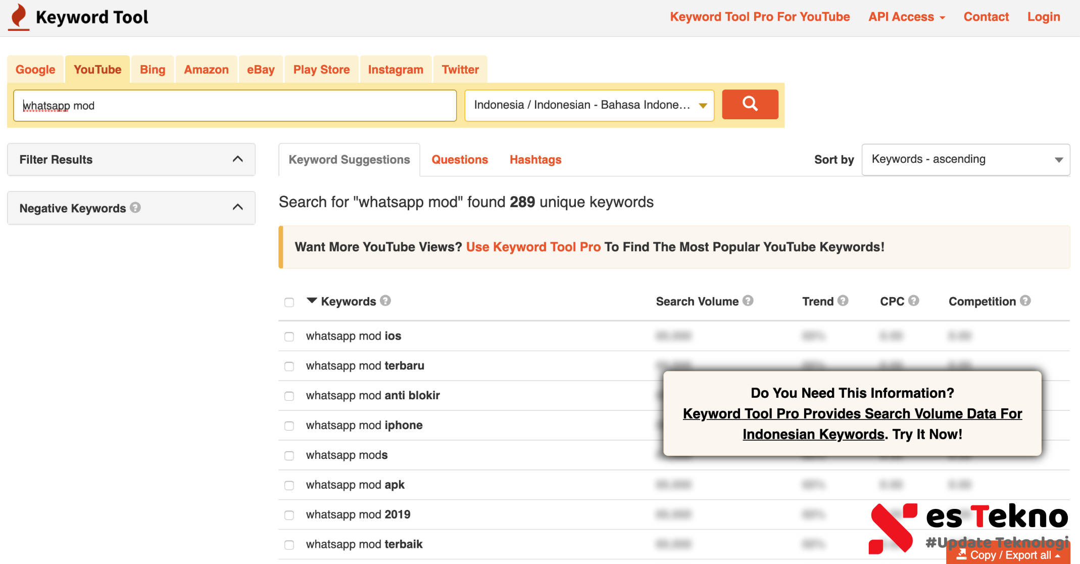 Untuk contohnya admin menggunakan judul Whatsapp Mod Setelah menganalisa pencari maka admin mendapatkan banyak keyword tambahan yang masih dengan satu tema whatsapp mod