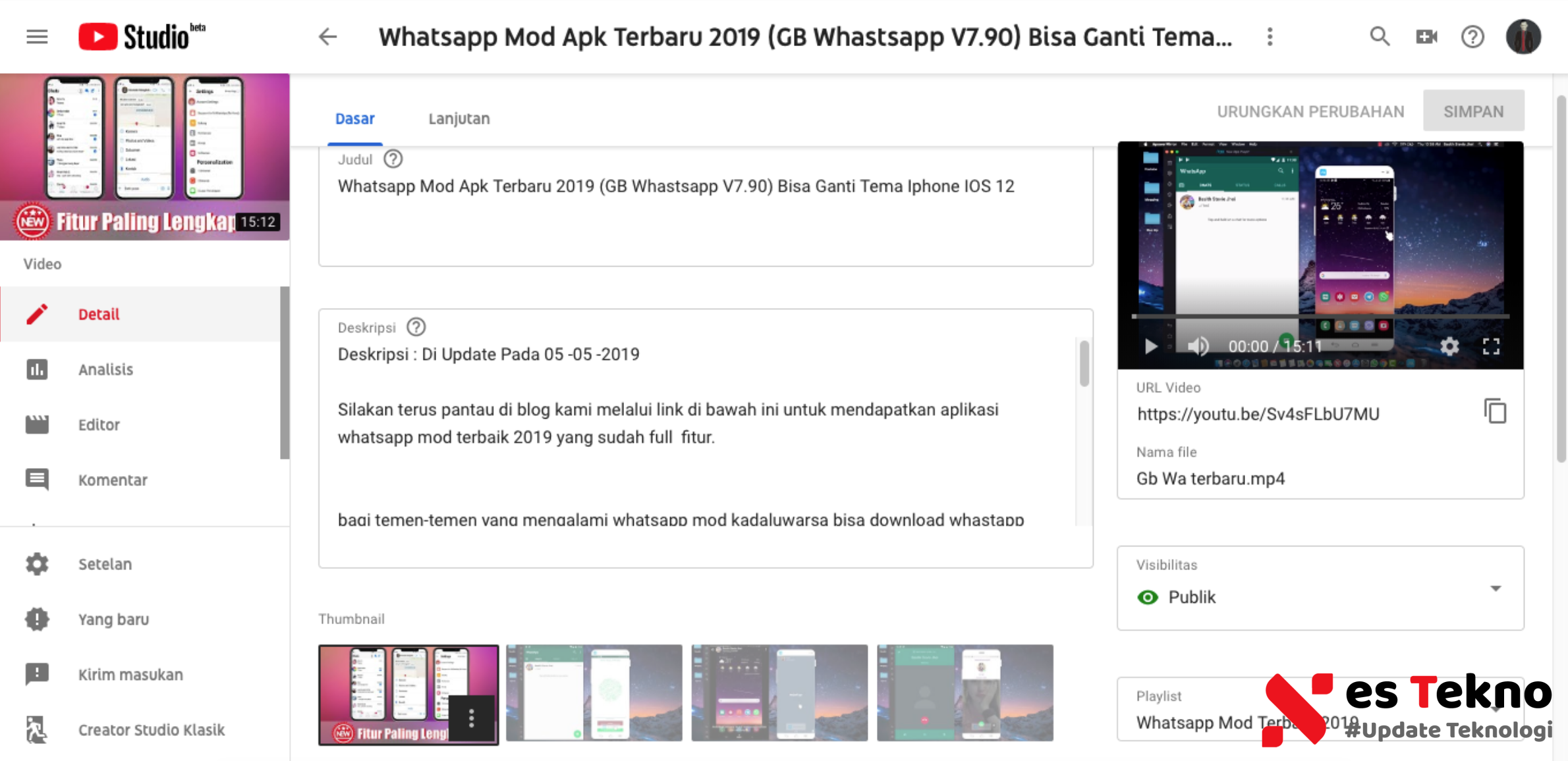 Perhatikan pada bagian Thumbnail video tersebut dimana gambar aslinya adalah 3 sebelah kanan. dan saya menggantinya dengan Thumbnail custom yang berada di sebelah kiri